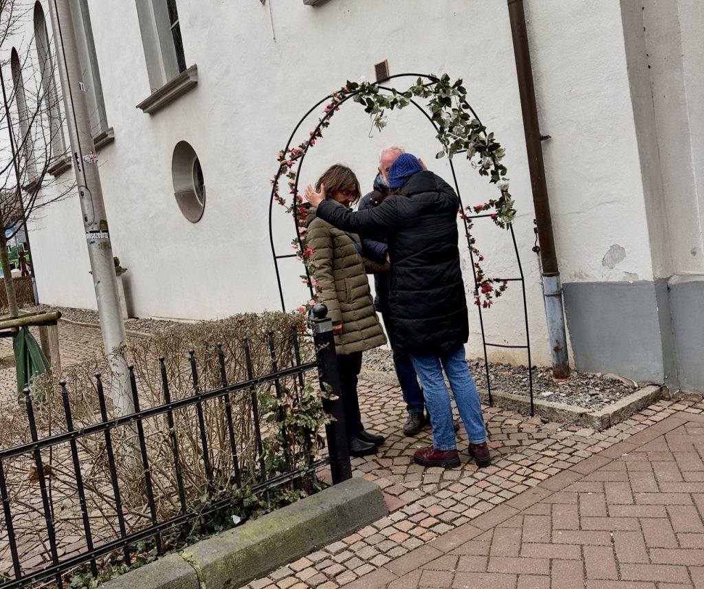 Über 30 Paare haben sich in der Kirche und unter dem Rosenbogen segnen lassen. Und unser Team vor Ort aus Pfarrer*innen und Ehrenamtler*innen verteilten über 320 Rosen an Passanten vor der Kirche. Eine Frau nahm ihre Rose mit den Worten entgegen: „Heute ist mein Glückstag.“ Ein anderer Besucher wollte sie seiner Frau ins Pflegeheim bringen. Die Segnungen waren voller Freude, Dankbarkeit und zum Teil tränenreich vor Rührung.